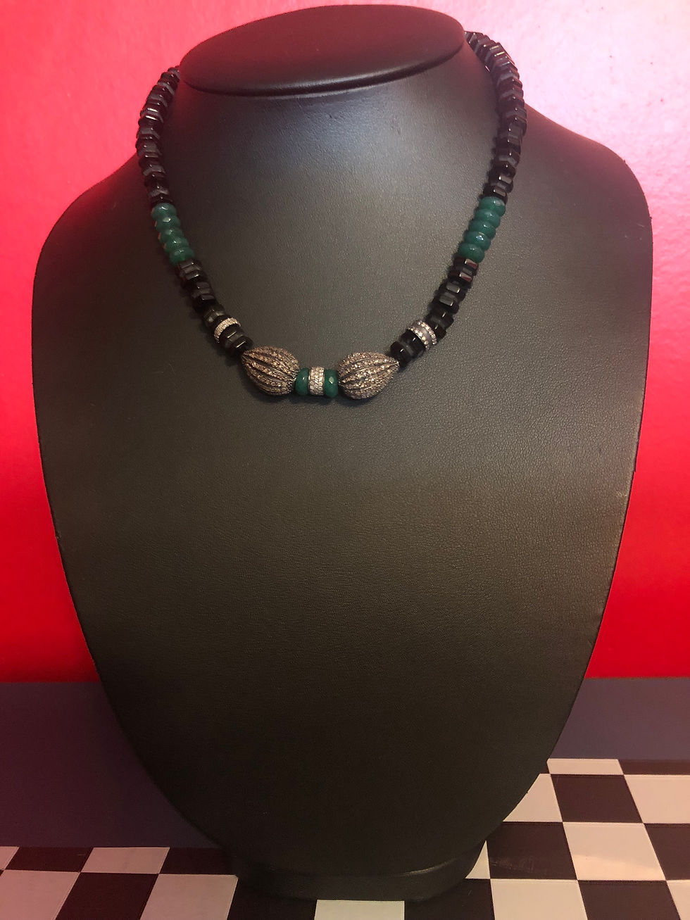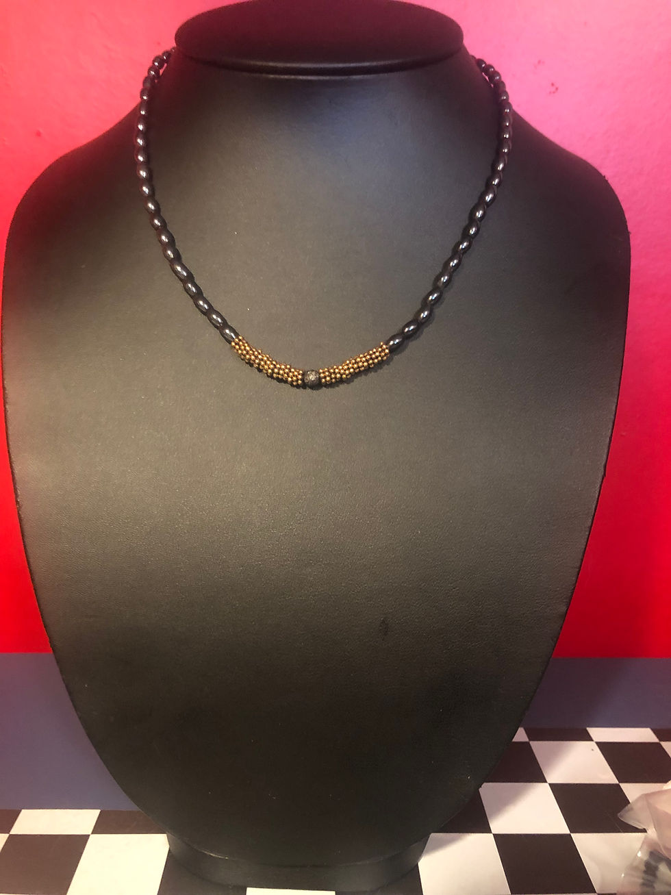 Each necklace is one of a kind, carefully designed. All gold beads are either 18K or 20K gold. They are hand made in india.
